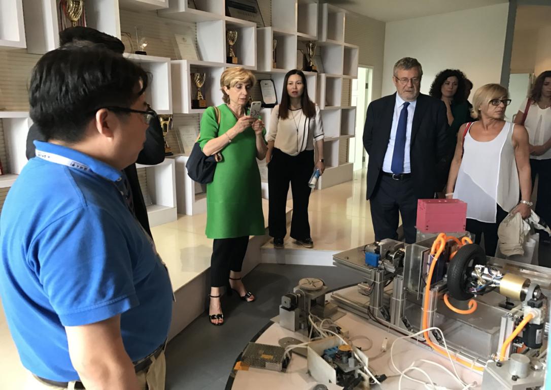 2018年5月28日,意大利伦巴第大区及拉齐奥大区教育厅厅长Dott. Gildo De Angelis博士、意大利教育部人力资源部部长Dott.ssa Paola Pinto博士一行十人来访必赢线路检测中心参观交流。学院经理周宏明、副经理姜锐、办公室副主任徐雅、实验教学中心副主任王晓倩、外事专员李舒琦陪同参观并交流。