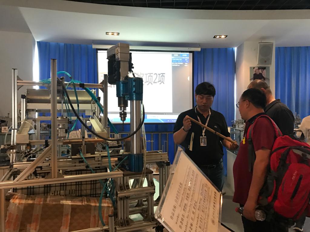 周宏明经理代表学院对汪磊经理一行表示热烈欢迎,在观看学院宣传视频后,大家一起参观了学院控工室、测试技术室、机器人模拟室等实验室以及员工科技成果展示厅。