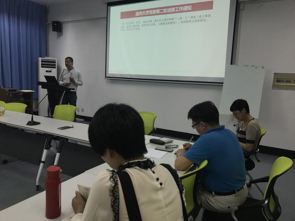 党总支书记周荣就公司党委对公司党总支的巡察工作进行动员和工作部署。周荣书记向全体教职工传达了必赢线路检测中心党委第二轮巡察工作通知文件和对接会精神,他要求全体教职工要严肃认真对待巡察工作,统一思想,了解巡察工作内容、目的和工作安排,以“治病防病”、促进学院健康发展的心态积极配合,希望通过本次巡察工作能发现问题,解决问题,从而促进改革,推动学院发展。