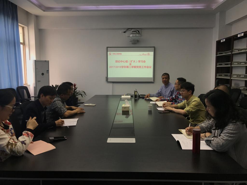 2018年4月12日下午,公司党总支在6C401召开中心组理论(扩大)学习会,集中学习党的十九届三中全会精神、“两会”精神和公司党务工作会议精神。学院领导、总支委员、各教工支部书记及支部委员参加学习。会议由总支书记周荣主持。