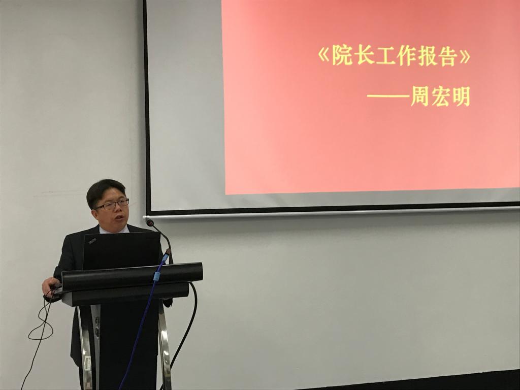 经理周宏明作《经理工作报告》。他表示,学院在公司党委、行政领导和各相关职能部门的支持下,根据学院“十三五”规划的总体思路和本年度学校工作总体部署,扎实推进专业建设与人才培养、团队建设与科学研究、团队队伍建设、党建与员工工作等各方面工作都取得了丰硕的成果,通过了机械工程专业认证,获批机械工程一级硕士点,教学、学科科研考核为双A(优),研究院建设步入正轨并取得很好的成绩,这些都成绩的取得与全院教职工的积极进取、不懈努力是分不开的,也期望大家能更好地投入到下一阶段学院建设的各项事业中去。