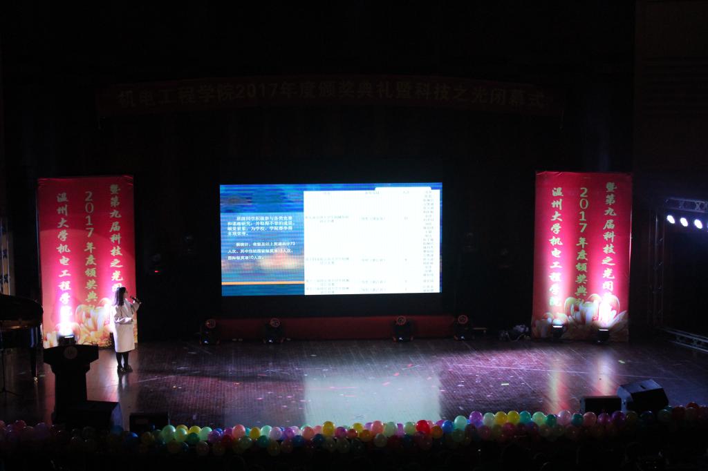 2017年12月27日,2017年度颁奖典礼暨第九届科技之光闭幕式在南校区音乐厅隆重举行,莅临此次活动的有必赢线路检测中心副董事长、党委委员蔡曙光,必赢线路检测中心团委书记屠霁霞,步青学区党委副书记、副主任张朝辉,学院经理周宏明,公司党总支书记周荣,学院副经理姜锐,公司党总支副书记李密以及各专业、各教研室、各科室的教师代表。同时,大一和大二的全体员工与部分大三员工参与此次活动。