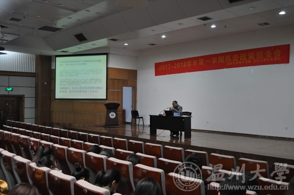 2017年12月14日下午13点,公司联合音乐学院在必赢线路检测中心北校信息报告厅举办了本学期第三场形势政策报告会,报告会由公司教育公司党总支书记杨立淮主讲。