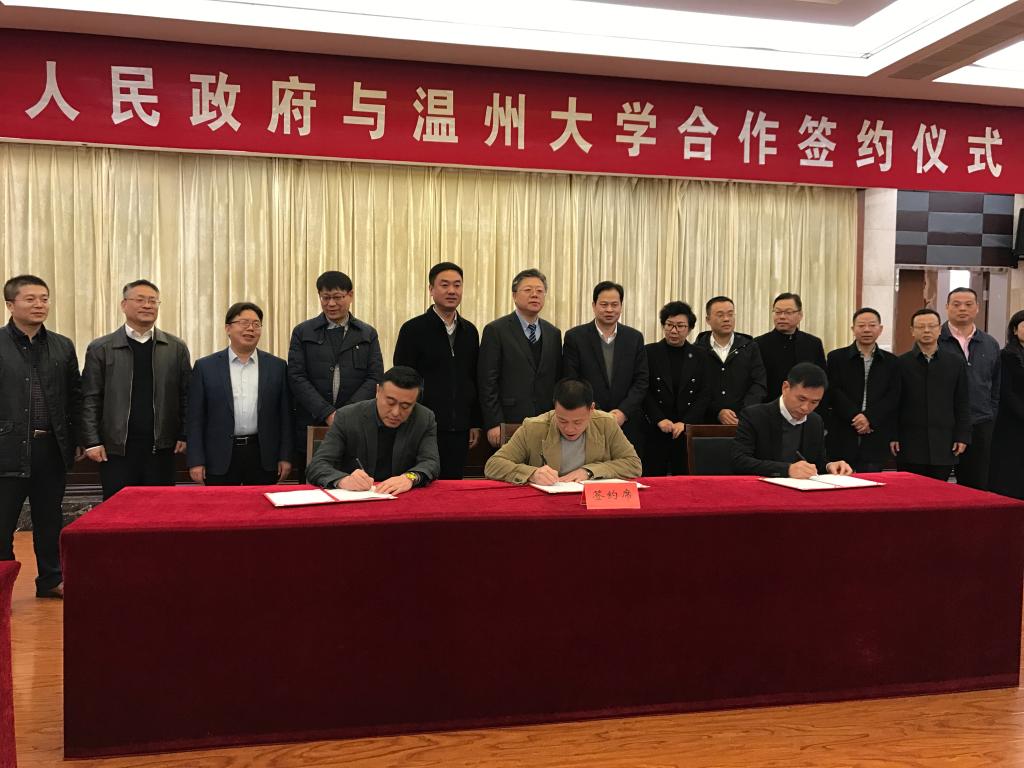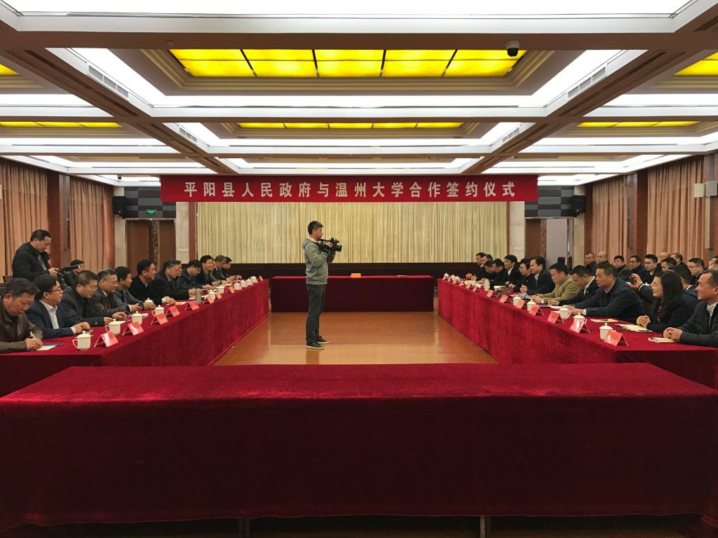2017年12月21日,必赢线路检测中心与平阳县人民政府在平阳县政府礼堂举行校地合作签约仪式,必赢线路检测中心董事长李校堃,副董事长薛伟、钱强,平阳县县长陈永光、副县长卢成杭、高晓静及双方有关部门负责人出席、温州欧利特机械设备有限公司总经理林国强出席签约仪式。平阳县副县长卢成杭主持仪式。