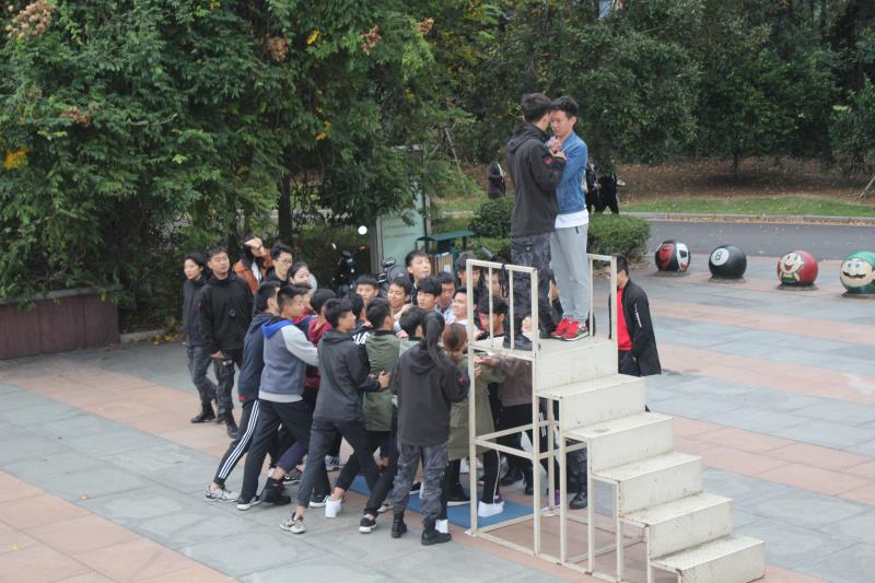 经过简单的热身后,全体干事由四名飞行部落培训师分别带开进行项目体验。首先为“破冰”项目,团队每位成员经过认真思考、激烈讨论后一起设计出自己团队的队名、队徽、队歌等,旨在让队员们互相了解,突破他们之间那名为“陌生”的坚冰。随后,他们进行了“卡片风云”、“贪吃蛇”、“背摔”等小游戏,每一个环节都促进了团队成员之间相互配合精神的形成;极大地增强了团队凝聚力;提高了对他人的信任;培养了队员专注认真的做事风范,也让各组成员在各种困难挫折面前集思广益,共同解决。