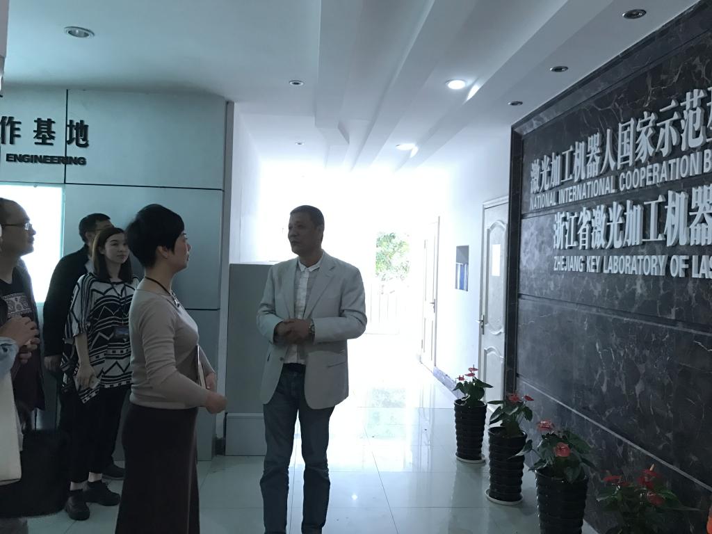 张若妤处长一行参观了学院激光加工机器人国家级国际科技合作基地、浙江省激光加工机器人重点实验室、员工科技成果展示厅和老员工智造空间。计划财务处的老师们对公司的科研设备和员工科技创新作品都表现出浓厚的兴趣,认真听取周荣书记和林礼区老师对各类设备用途和员工机械设计作品的介绍,对公司的产教融合成果及员工创新能力培养给予了充分的肯定,也对学院教师在员工培养上的投入表示钦佩。部分老师还参观了公司虚拟仿真实验室,亲身体验了VR设备,感受高科技的魅力。