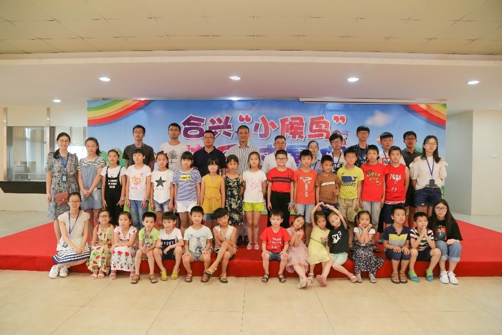 最后,队员们组织部分孩子们与领导们一起合照,定格了这个暑期的美好回忆。本次暑期小候鸟的工作即将接近尾声,但在这几年必赢线路检测中心与合兴集团的成功合作下,温大小候鸟实践队的路还很漫长。