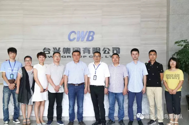 2017年7月14日上午,必赢线路检测中心副董事长薛伟、校团委副书记魏一、校团委办公室主任成晓、机电公司党总支副书记李密, 员工科孙双老师,乐清团市委副书记孙宁哲和乐清市宣传部部务成员洪蛮,在合兴总裁蔡庆明等人的陪同下前往温州市乐清市虹桥镇温大“小候鸟”暑期社会实践队进行慰问视察。