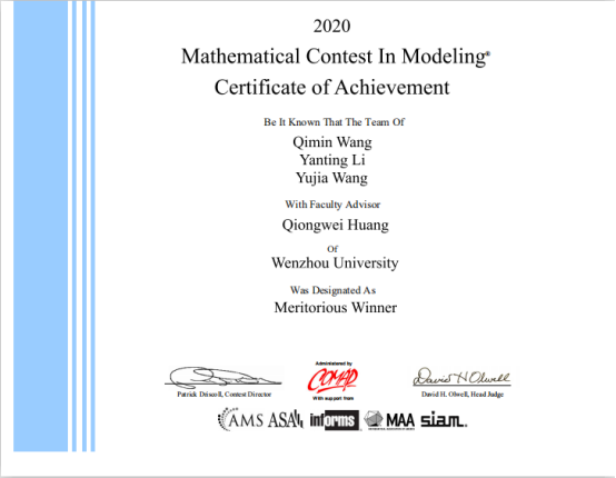 近日,2020年美国老员工数学建模竞赛成绩揭晓。必赢线路检测中心18工业工程班的王启敏、李艳婷和汪雨佳三位本科生组成的参赛团队,在激烈的角逐中脱颖而出,荣获一等奖。这也是机电学院本科生在国际性数学建模大赛中的首次获奖。