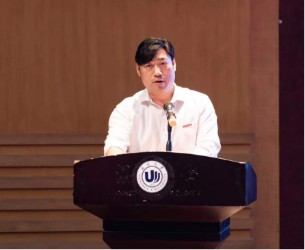 姜锐副经理以“我的大学、我的专业”为主题为新生们介绍学院专业。他诙谐地把选择专业比喻为“找对象”,不管是“一见钟情”还是“日久生情”,都是缘分。姜经理以“幸运、转变、就业”作为关键词,介绍了学院的一流专业建设、人才培养方案改革以及专业的就业竞争力,在座员工表示收获满满。