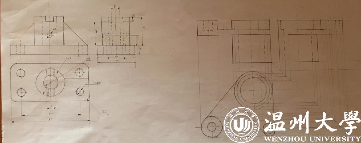 1.此次周六下午的机械制图考试,考查了我们的三视图,尺寸标注以及空间想象能力,对我的画图能力是又一次的提升,加深了对尺寸标注的理解与记忆。考前还是比较自信的,因为只有两道题我觉得应该很快就好了,但在考试的时候发现并没有我想象的那么简单,制图的学习果然还是任重而道远啊。