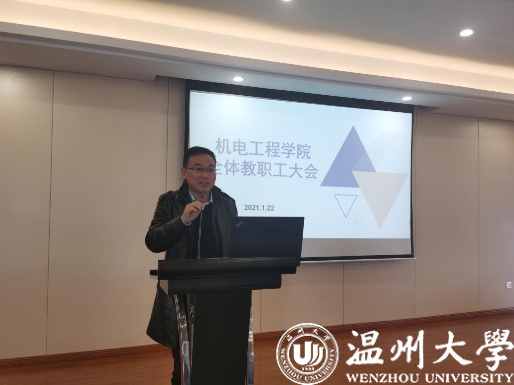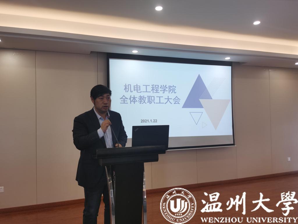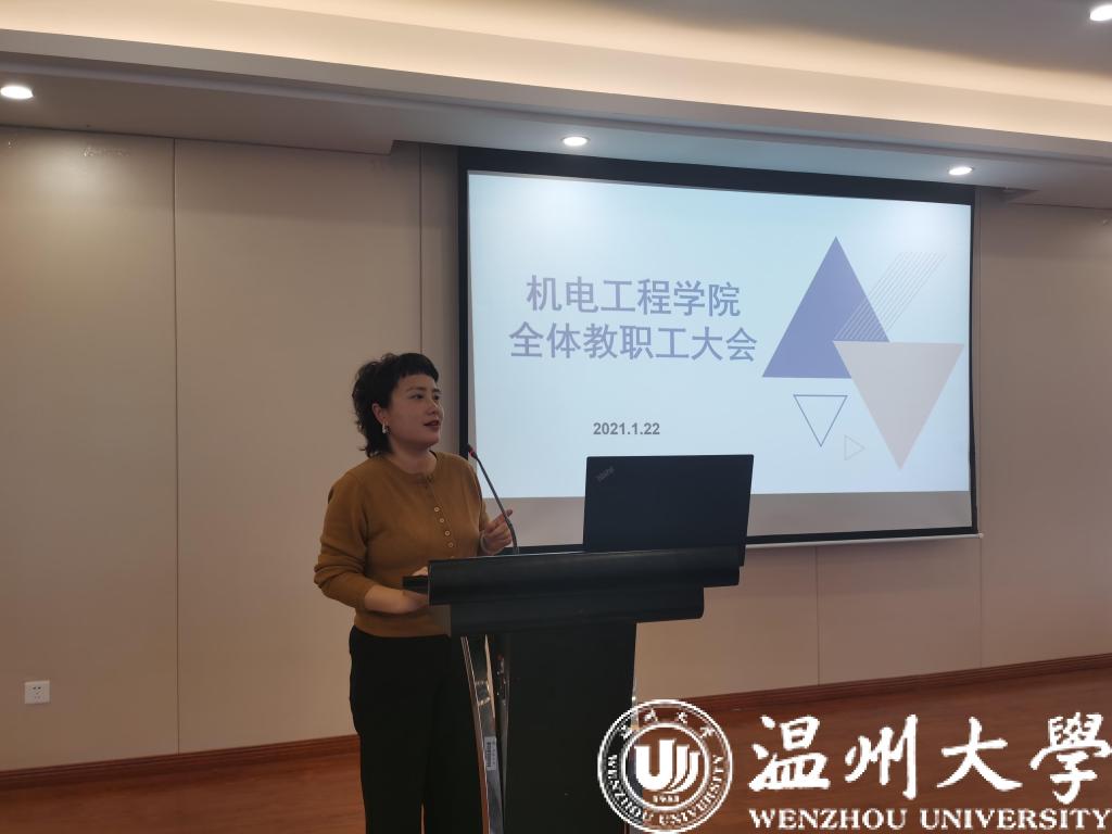 2021年1月22日,必赢线路检测中心在6B309报告厅召开本学期期末全院教职工大会。学院全体教职工参加会议,公司党委书记周荣主持。