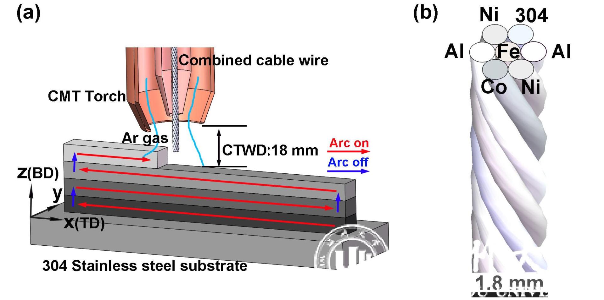近日,必赢线路检测中心研究生沈晴凯等人在陈希章教授的指导下完成的科研论文“Fabrication of bulk Al-Co-Cr-Fe-Ni high-entropy alloy using combined cable wire arc additive manufacturing (CCW-AAM): Microstructure and mechanical properties”在国际著名工程技术TOP期刊《Journal of Materials Science & Technology》(IF=6.155)上发表,并被遴选为封面论文。该论文提出了一种采用新型绞丝进行高熵合金电弧增材制造的方法,为大尺寸和复杂形状高熵合金材料及产品的制造提供了一种高效高质有前景的制造方法,制造的Al-Co-Cr-Fe-Ni高熵合金达到强度2.8GPa和塑性42%的优异结合。该方法突破后,系列成果陆续发表在JOURNAL OF ALLOYS AND COMPOUNDS、MATERIALS SCIENCE AND ENGINEERING A等工程技术TOP期刊发表。