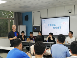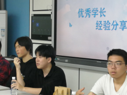 綦法群老师一一介绍参加本次交流会的8位学长的基本情况,成功考上中国科学院大学、合肥工业大学、上海大学等国内双一流名校研究生的8位学长与学弟学妹们分享他们在考研过程中的点滴经验:如何备战数学、英语、政治及专业课,如何选择目标学校以及复试中应该注意的一些问题等等。互动环节气氛活跃,同学们争先恐后地向学长们请教如何克服考研复习中遇到的焦虑、恐惧等心理障碍以及如何制定合理的学习计划等问题,学长们对同学们的疑惑都耐心的一一作答,还鼓励大家要敢于迎接挑战,制定更高的奋斗目标。