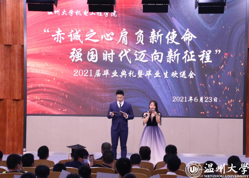 《 忆往昔,流年似水 ;展未来,意气风发》VCR将全场气氛掀上高潮,视频中老师的谆谆教诲,既骄傲于员工的成长,也感激于员工的包容,期待2021届机电学子毕业后,仍能发扬“求学问是,敢为人先”的校训,做有崇高理想和高尚品德的人。
