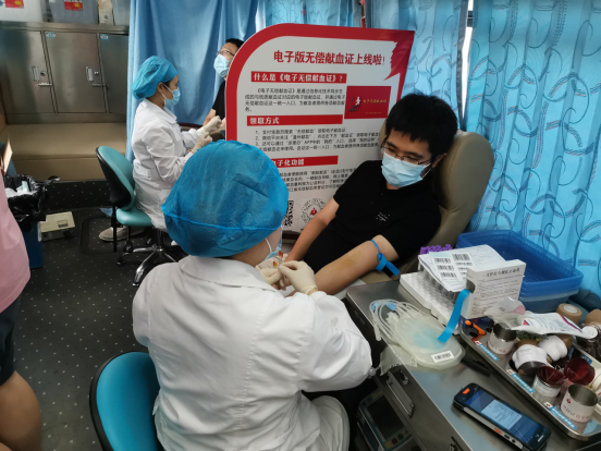 经过网上与线下填表、现场登记、测量血压、医嘱检查、采血等多个环节,最终吴英龙、张毅、张德舟、陈芝向、潘敏辉5位老师献血成功。