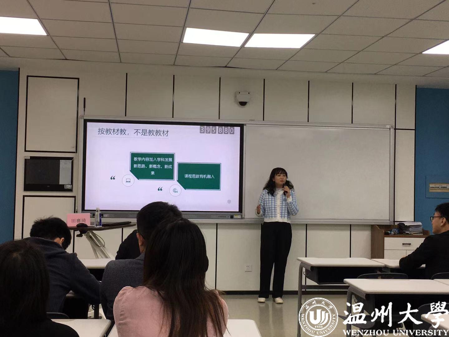 田赛琪老师分享了关于教室课堂教学竞赛的思考与感悟,对学校课堂教学竞赛评分标准、教学内容、教学方法、导入、教学语言、竞赛流程、说课等方面进行详细的解读和说明,培训期间,田老师结合自己的参赛经验,深入浅出地讲述了教师进行教学所要解决的基本问题,并完整呈现了说课的7大要素,让在座的老师对说课有了更直观的感受和认识。