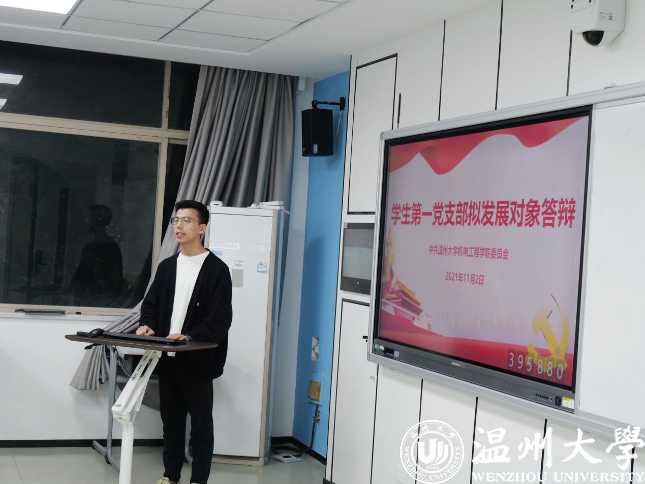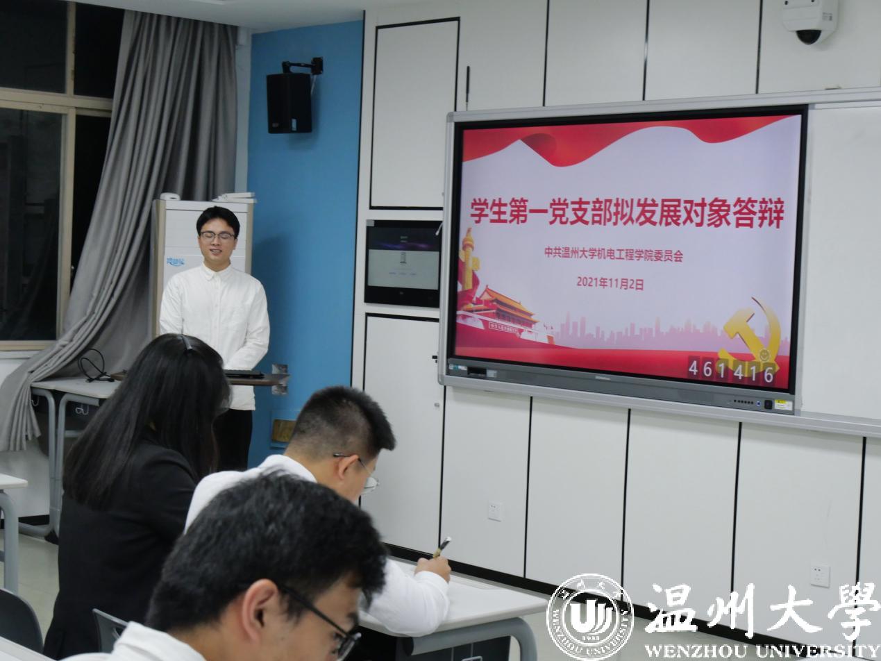 在本次答辩会上,员工第一党支部梁嘉伟、余成玘、林家豪、周洋光、周斌瑞、金鸿斌、徐湘喻、张越洋、周欲欣9位同学参与答辩;员工第二党支部苏智楠、张涛、郭治东、蔡嘉淇4位同学参与答辩;员工第三党支部朱莉、魏淳辉、张德楠、林慧、严潘铃、范雯慧、吴子豪、叶程鹏、王成鑫、陈曹宇、虞远航、曹高涵、戚建波、郏杨昊、王洪群、李佳明、余飞岑17位同学参与答辩。答辩人主要从对党的认识、入党动机、学业水平和参加实践等方面进行汇报。同时,支部党员对候选人进行党史党章,时事政治等的提问。
