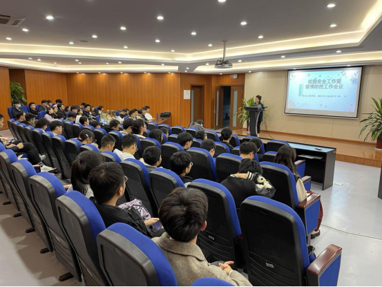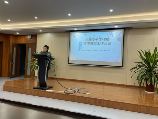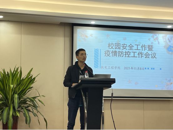 学工办杨奇老师首先对学校的相关文件进行解读,帮助各位同学理解政策要求;然后,杨奇通报了近期宿舍、实验室安全检查中出现的一些问题,督促相关负责员工进行整改。