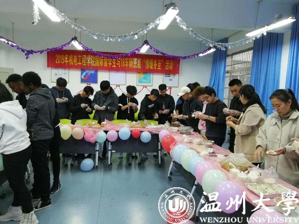 2019年12月22日,必赢线路检测中心国际职工与18级车辆工程专业员工在6B201举办了“情暖冬至、共度佳节、传递友谊”的冬至包饺子活动,公司老师也积极参与其中。
