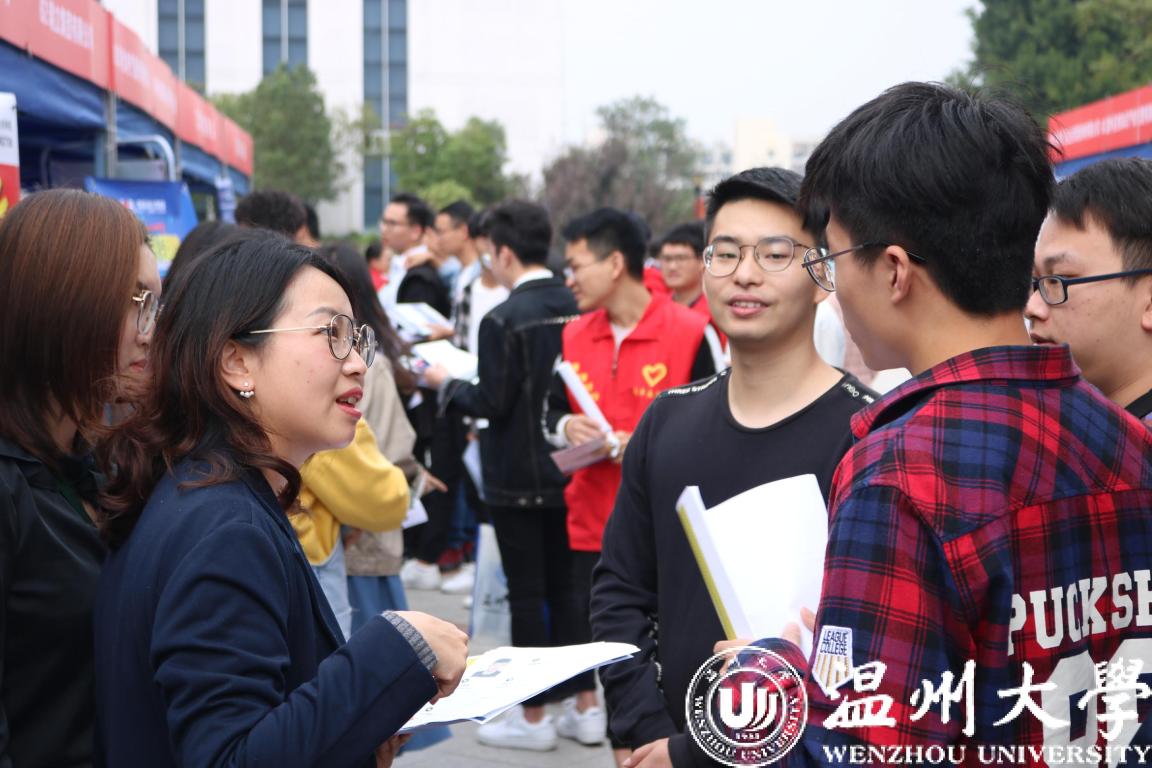 参加此次招聘会的64家企业主要来自于江苏、上海、浙江等地,并以温籍企业居多,给应届毕业生提供了数以百计的涉及工程、机械、设计、生产、计算机、电子等专业类别的就业岗位。众多优质的企业参加了本次招聘会,吸引了大量的大三大四员工,现场人头攒动。有些毕业生站于企业帐篷前仔细听企业HR介绍,有些毕业生则胸有成竹,手中拿着自己的简历,在企业帐篷前排队准备进行现场的简单面试。此外,一批17级明年才毕业的同学也来到现场进行观摩学习,提前了解就业形势。现场的“红马甲”在学院领导、老师的指导下奔走服务于企业与求职毕业生之间,这使得整个会场在气氛热烈的同时井然有序。活动的尾声,志愿者们还对企业的反馈信息进行了收集,97.96%的企业对于此次招聘会志愿服务十分满意,有部分企业晚上进行了宣讲会,同样有不少的同学参与其中。