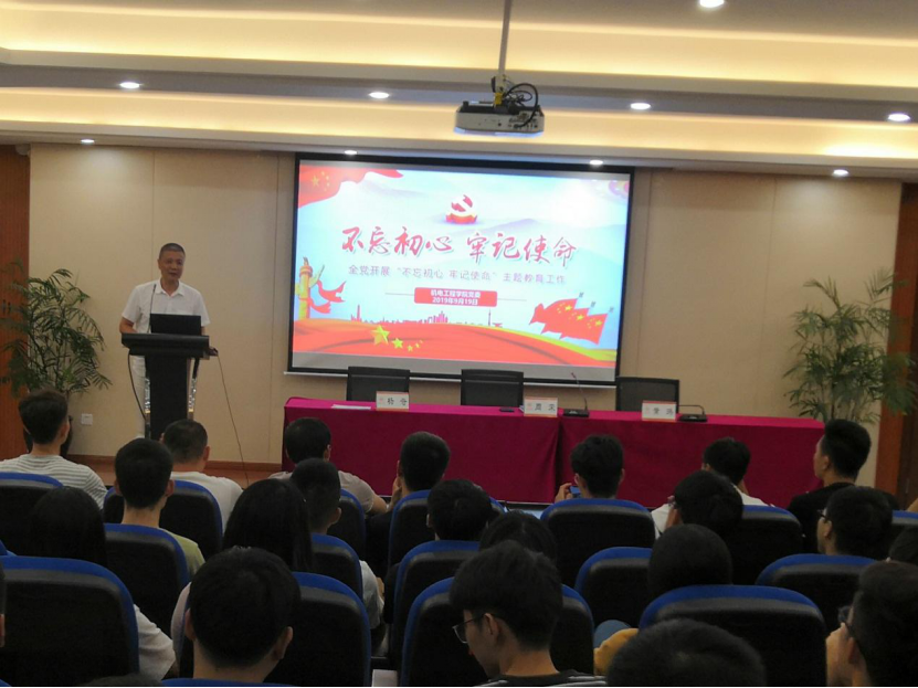 9月19日下午,公司党委在6B309学术报告厅召开“不忘初心、牢记使命”主题教育工作会议,公司党委书记周荣和副书记黄玮作专题辅导报告,学院研究生、本科生党员参加会议。