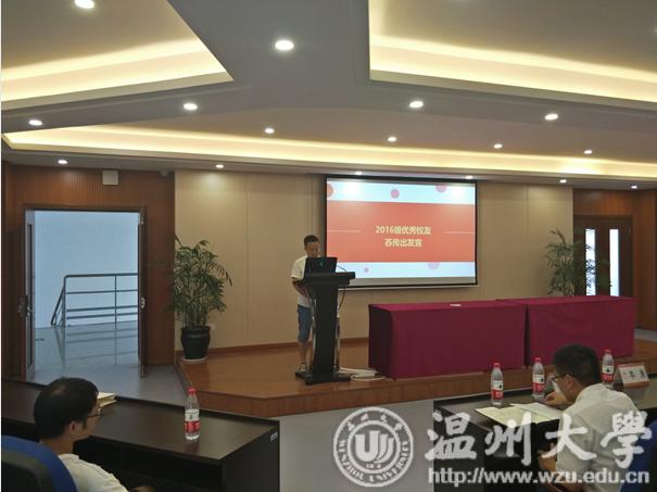 之后优秀员工代表代表苏传出做了简短而精彩的发言,同时也表达了对新一届师弟的欢迎,并与新生交流自已的研究生科研以及生活的经验,并对同学们提出了根据自身情况所总结的一些知识。