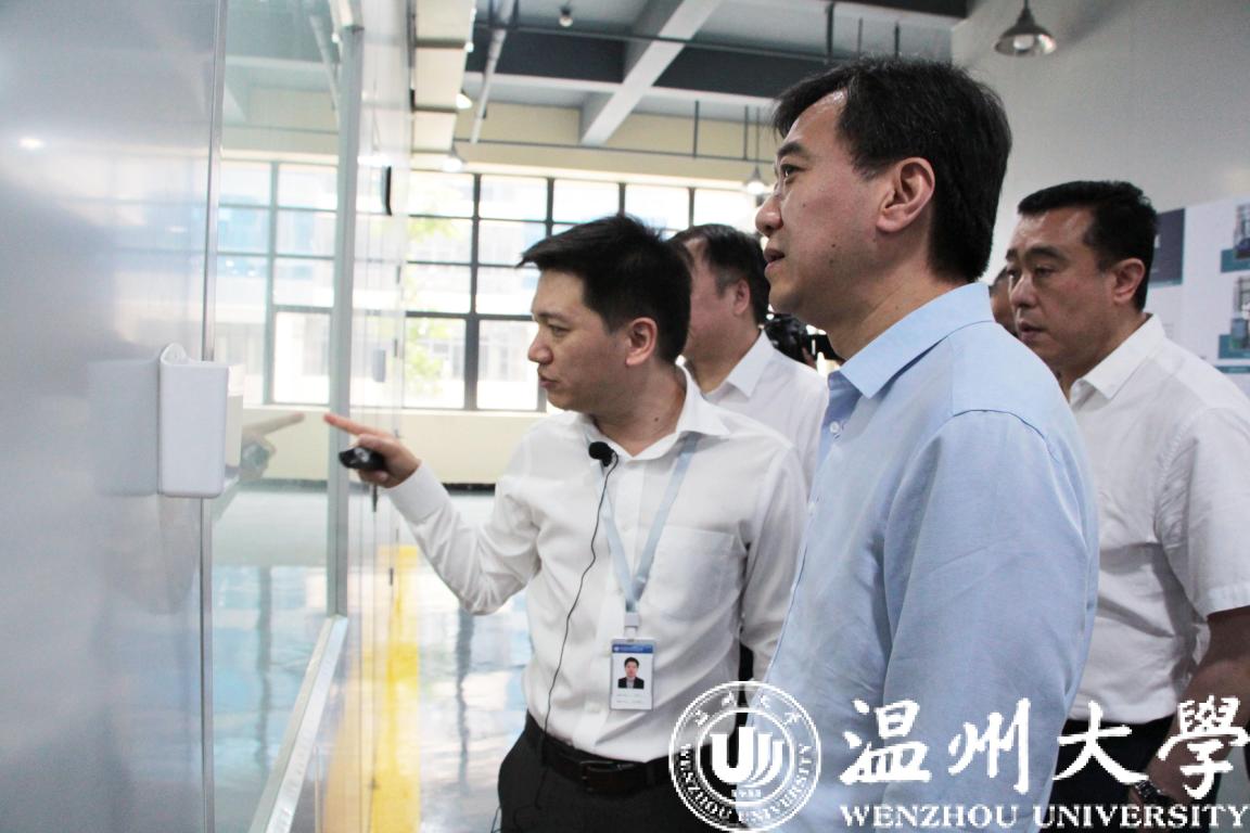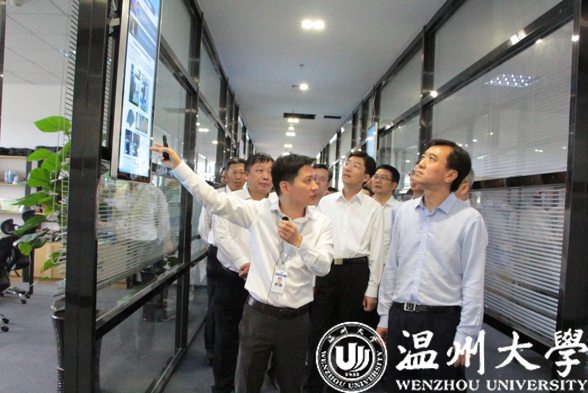 高鹰忠厅长一行先后实地考察了综合体的研究开发中心、高端制造中心、技术转移中心、检验检测中心、教育培训中心和国际合作中心,听取了综合体在目标定位、成果转化、企业服务、高端研发和人才引进与培养等方面的工作汇报。高鹰忠厅长对综合体的建设表示充分肯定,对综合体和必赢线路检测中心服务于地方的作用表示赞赏。他指出,创新资源的加速集聚有助于温州市科技创新的不断提升,并将为温州高质量发展提供关键的力量支撑。要充分发挥综合体的使命和作用,加大面向本地中小企业的创新驱动服务,放大聚合效应,将综合体打造成为专业化、一体化、综合化的产业创新服务平台。他希望综合体借助于必赢线路检测中心的力量,将大学的研发和人才优势同温州产业发展需求紧密结合起来,深度挖掘企业需要,提高成果转化的速度和力度,提升服务地方的能力和水平,抢占技术制高点,加速温州产业转型升级,助力温州“两区”建设。