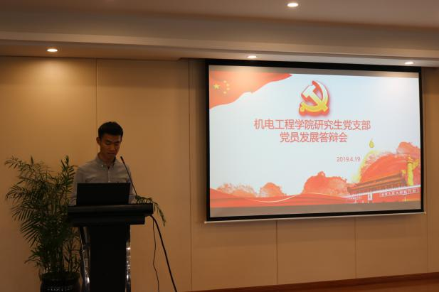 在研究生党支部副书记张玉朋介绍完公司党员发展答辩会制度实施办法之后,五位答辩人逐一展示了自己的答辩PPT,向党组织汇报了自己对党的认识,陈述了入党动机及自身表现,同时也就自身存在的优点和不足之处进行了深刻的分析,并明确了自己今后努力的方向。随后,在场的党员同志和评委客观公正地对答辩人进行提问,环节气氛活跃。