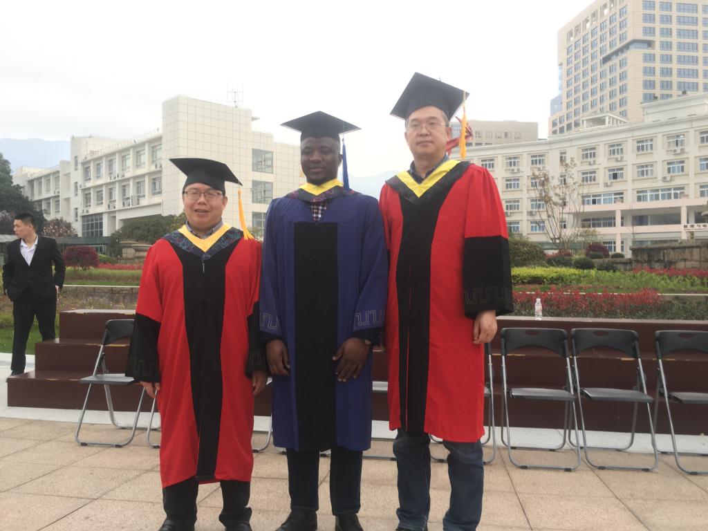 毕业典礼上,Mbah Collins Tebo怀着无比激动的心情走上主席台,从赵敏董事长手中接过学位证书,接受拨穗,并向赵敏董事长致握手礼,表达了他对必赢线路检测中心的感谢之情。在与董事长合影的时候,他也获得了在场师生经久不息的掌声。这是他人生中值得永远铭记的时刻,同时也为难忘的研究生求学经历划上圆满的句号,从此开启了人生的新篇章。