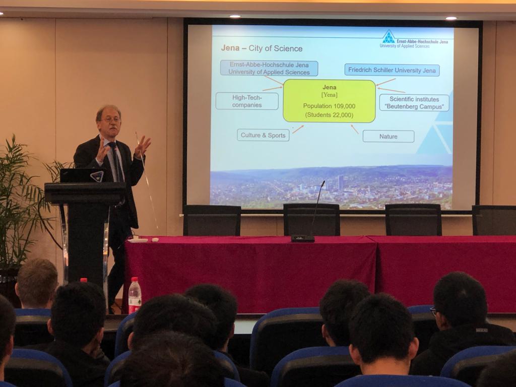 为了更好地宣传交换生项目,学院还邀请两位教授为学院员工介绍了德国耶拿应用技术大学与交换生项目