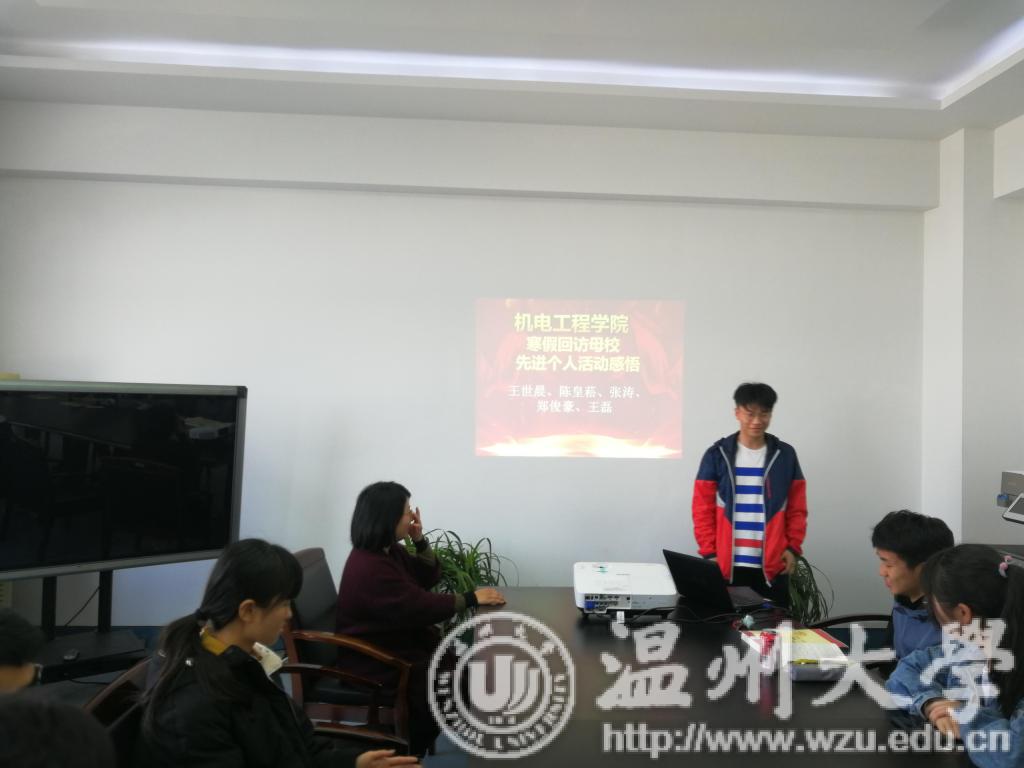 典礼开始,由李书记为五位先进个人以及优秀班级团体代表颁奖,并合影留念。李书记对他们的成果表示了赞许和肯定。先进个人随后发表了自己在活动过程中的感悟。寒假期间,机电学子回到母校,向自己的学弟学妹介绍了我们必赢线路检测中心,既锻炼了自己的能力,也能帮助学弟学妹们进一步了解高考志愿填报。此次活动对温大和公司来说也是一个很好的宣传机会,寒假回访母校社会实践活动在公司学子努力下圆满完成。因此学院也为活动的先进个人及优秀团队举行了颁奖活动,对他们的表现表示肯定和鼓励。