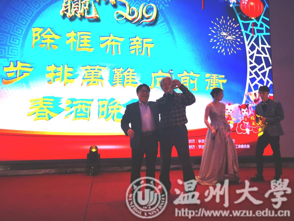 当晚还受邀参加该企业《迎战2019除框布新,迈大步,排万难,向前冲》春酒晚会,周宏明经理致辞并代表学院赠送“TSE”教育基金纪念奖杯。