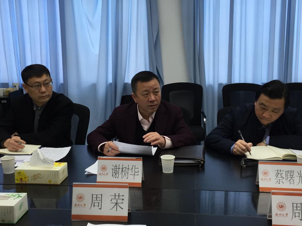 最后,谢树华书记作重要指示。他指出,机电学院建设发展卓有成效,校地合作有重大突破、团队建设成效显著,同时学院领导对学校的发展建议既有高度又有深度,既有针对性、也有可操作性。他也对学院发展提出了几点希望和要求:一要强化学院办学主体责任,要做到环境育人、要走在团队建设的前沿、要打造特色专业;二要积极探索校地合作的有效形式,把对外合作与学校育人结合起来,使两者相互促进、共同提高;三要积极参与、推进学校改革创新,积极建言献策,为温大的发展做出更多贡献。