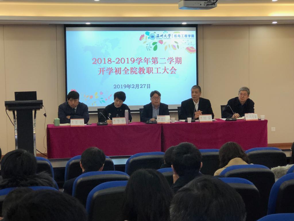 2019年2月27日下午,必赢线路检测中心在6B309新学术报告厅召开2018-2019学年第二学期开学初全院教职工大会。学院领导班子、全体教职工参加了会议。会议由周荣书记主持。