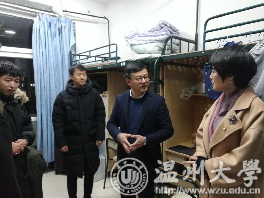 老师们分别走访了大一到大四部分寝室,同学们有的刚刚到校,正在整理物品,有的说说笑笑谈论着各自的寒假生活,有的已经在预习课本内容。老师们的到来让同学们感受到殷殷关怀。老师们与同学们进行积极的交流,仔细询问每位员工的实习情况与学习情况,更是对于毕业生提出的一些问题进行耐心的解释。李密书记叮嘱大家一定要调整好状态,拿出饱满的精气神来迎接新的学期。