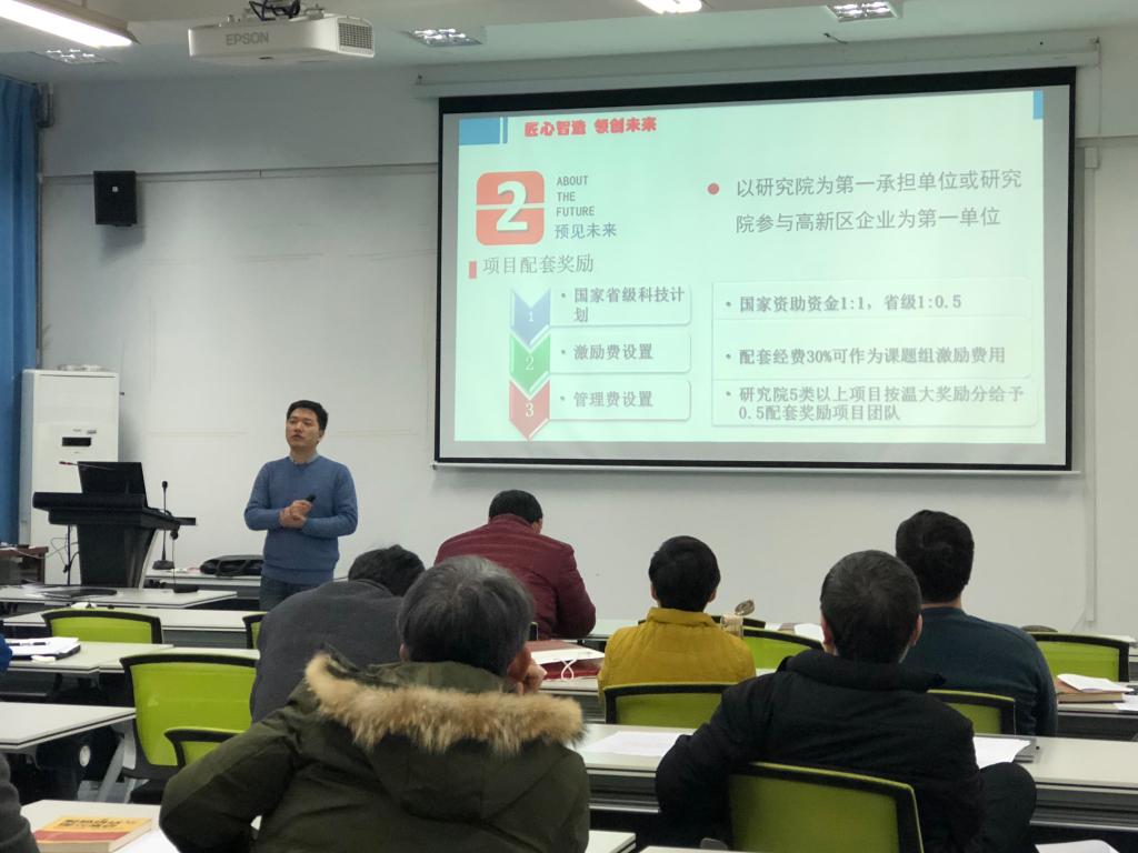 激光与光电智能制造研究院副经理李峰平代表研究院汇报了研究院一年来的工作情况并宣传了研究院政策。