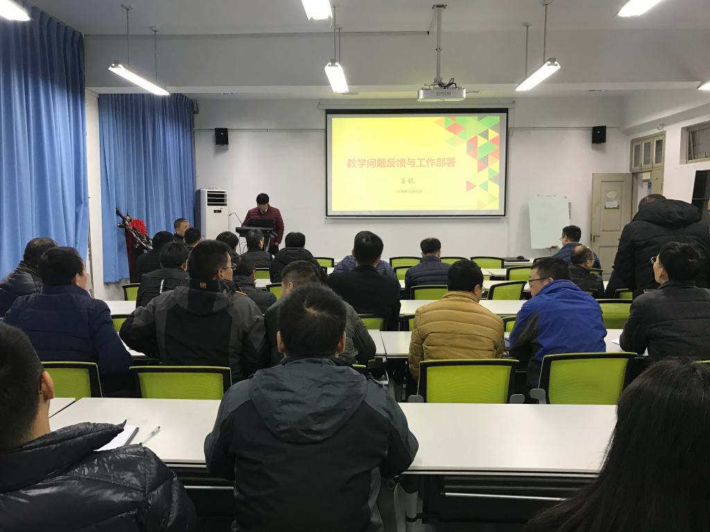 姜锐副经理首先对学院期中教学检查情况进行了反馈,对后期学院教学工作进行了部署,重点阐明考风考纪对于学风建设的重要性,并对严肃考试纪律、加强考场管理、端正学风提出了明确要求。