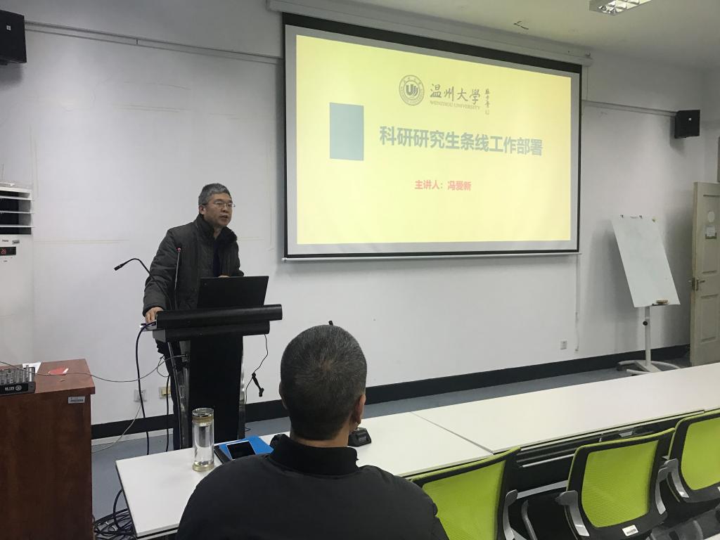 冯爱新副经理就科研、研究生条线工作进行了部署。他首先公布了必赢线路检测中心—浙南科技城激光光电智能制造研究生联合培养基地入选2018年浙江省研究生联合培养基地的喜讯。随后,就专业学位公司产品环节中的企业实践问题,冯爱新副经理着重进行了说明,他要导师高度重视,并且要签订公司产品基地协议。