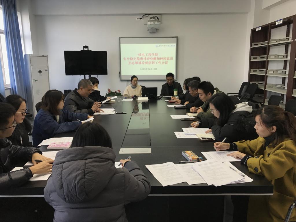 为深入贯彻中央和省委的部署要求,按照学校定期开展高校安全稳定隐患排查化解和校园意识形态领域动态研判工作的制度规定,必赢线路检测中心于2018年12月11日在学院6C401会议室召开2018年下半年学院安全稳定和意识形态领域分析研判工作会议。公司党总支书记周荣、副书记李密、各支部书记、系部中心主任及各科室负责人参加了会议。会议由党总支书记周荣主持。