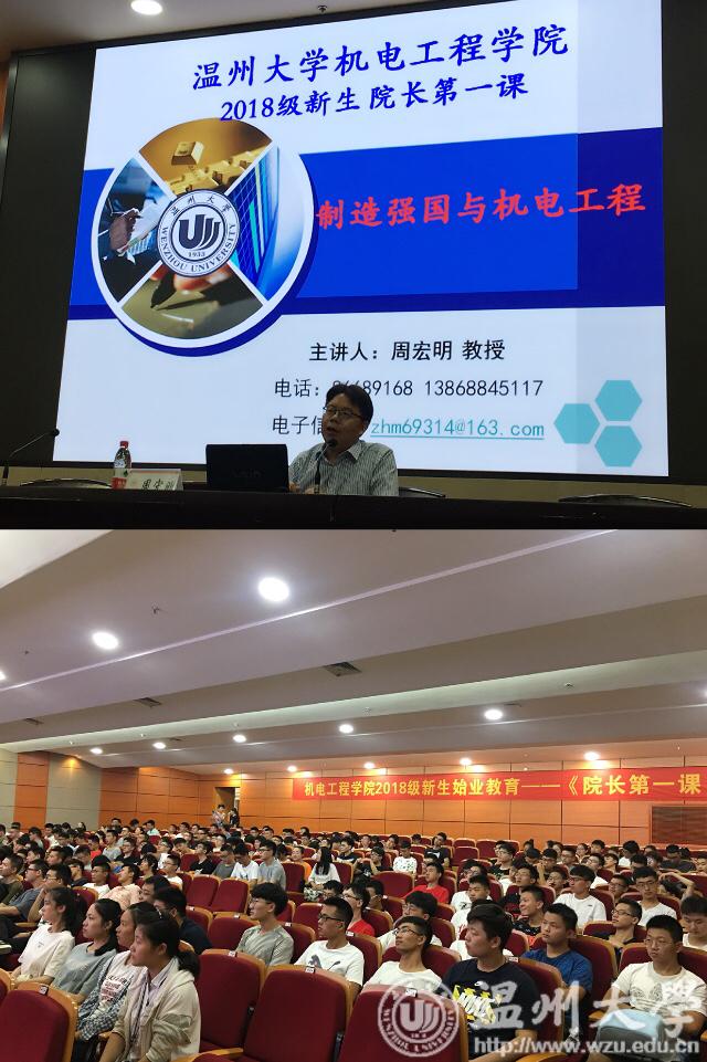 为帮助新生了解和适应大学的学习生活,激励员工们努力奋进,2018年9月13日8:30,必赢线路检测中心“经理第一课”新生始业教育专题讲座《制造强国与机电工程》主题报告在岩松堂雁山厅进行。学院经理周宏明给2018级全体新生上了大学第一课。