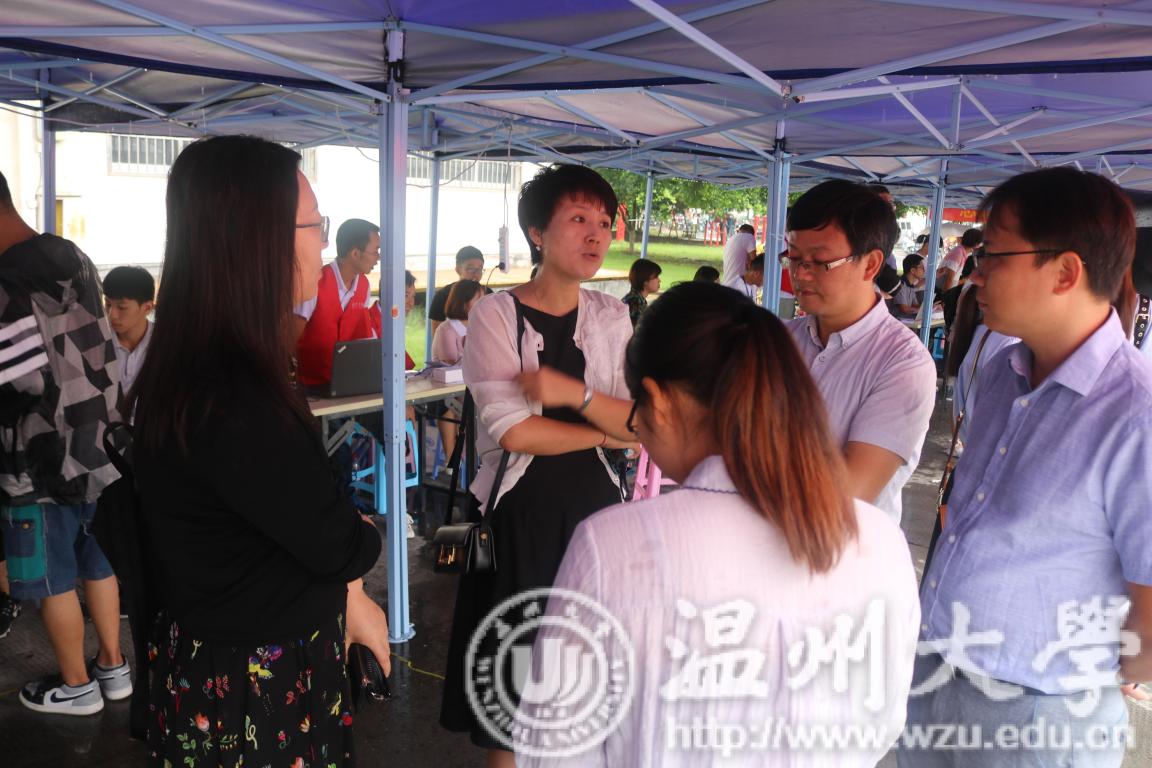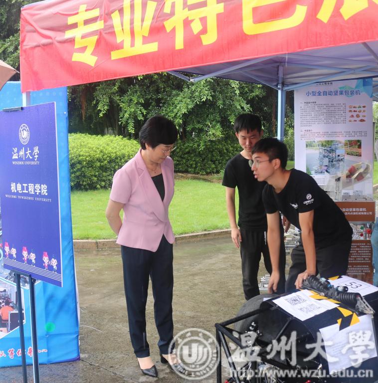 在报到处的另一侧,公司优秀学子的科技作品也吸引了许多新生及家长驻足欣赏,从他们眼中可以看出他们对那些制作出作品的优秀学子们的那一份敬佩。这其中也有公司党委书记林娟娟的身影,她愉悦地与现场的学子进行交流,脸上写满了对公司美好未来的期许。