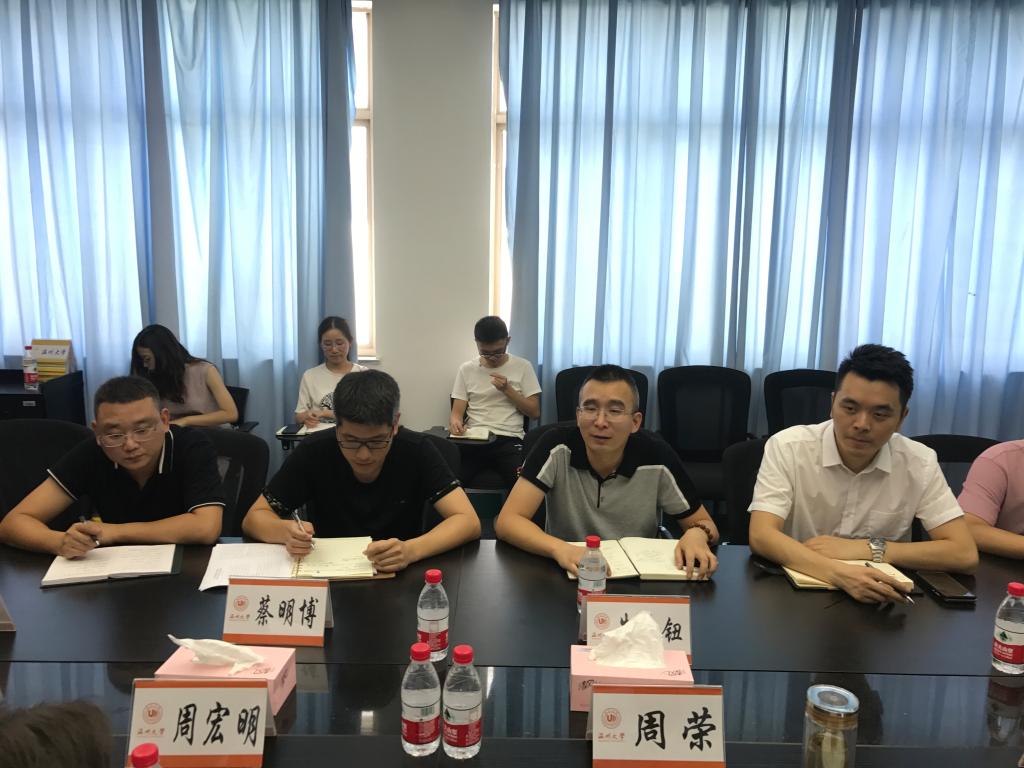 经理周宏明代表学院对高教园区管委会一行的到来表示欢迎,并就学院的学科科研建设、科学研究成果、研究院发展情况等几方面进行简要介绍。