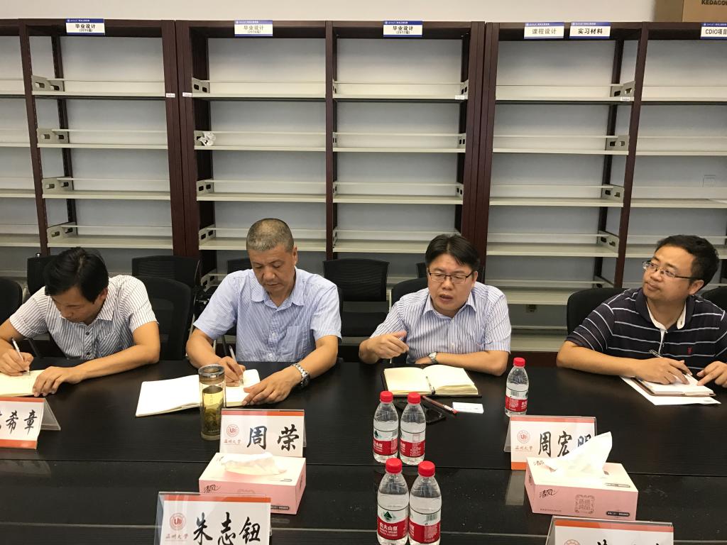 2018年8月13日下午,由高教园区管理办公室副主任蔡明博、副主任朱志钮、校地合作科负责人许增淼组成的调研组来到公司开展调研对接工作。学院经理周宏明、党总支书记周荣学术带头人陈希章教授以及办公室、机械电子系负责人参加了交流会。