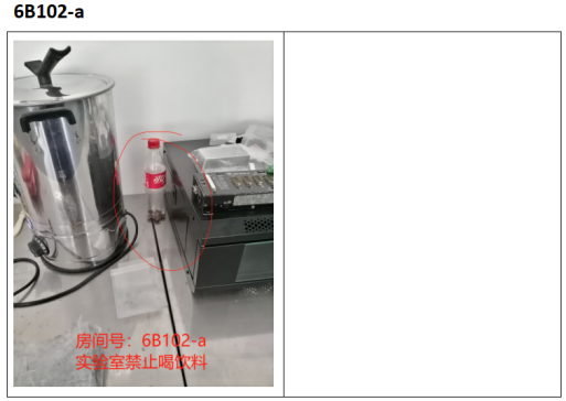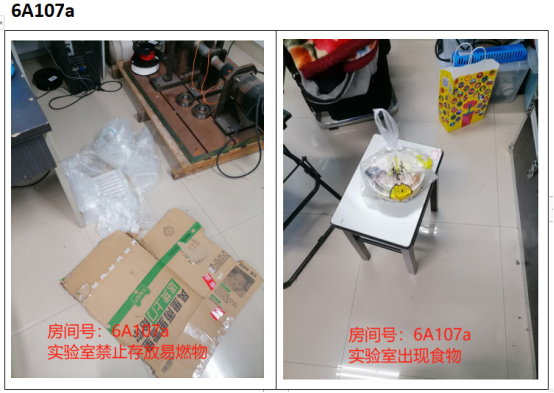 实验室出现大量易燃物;实验室出现食物 |